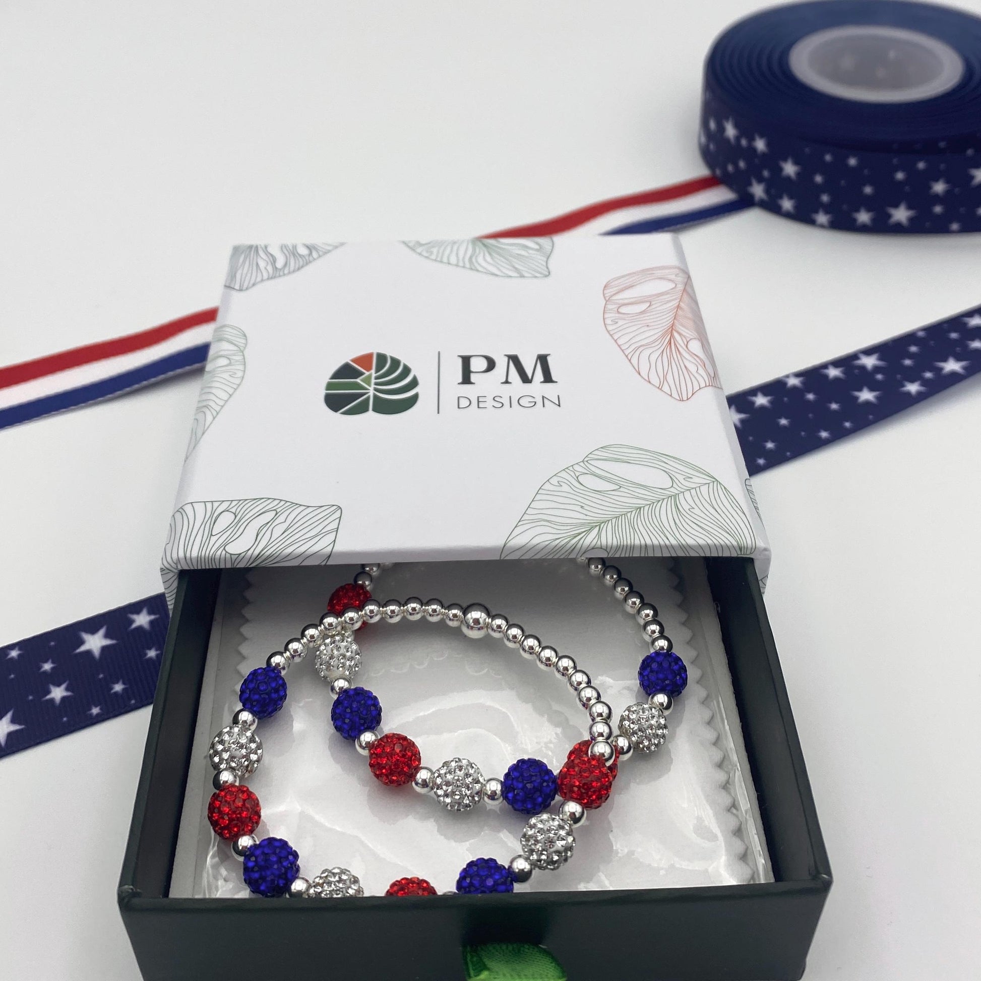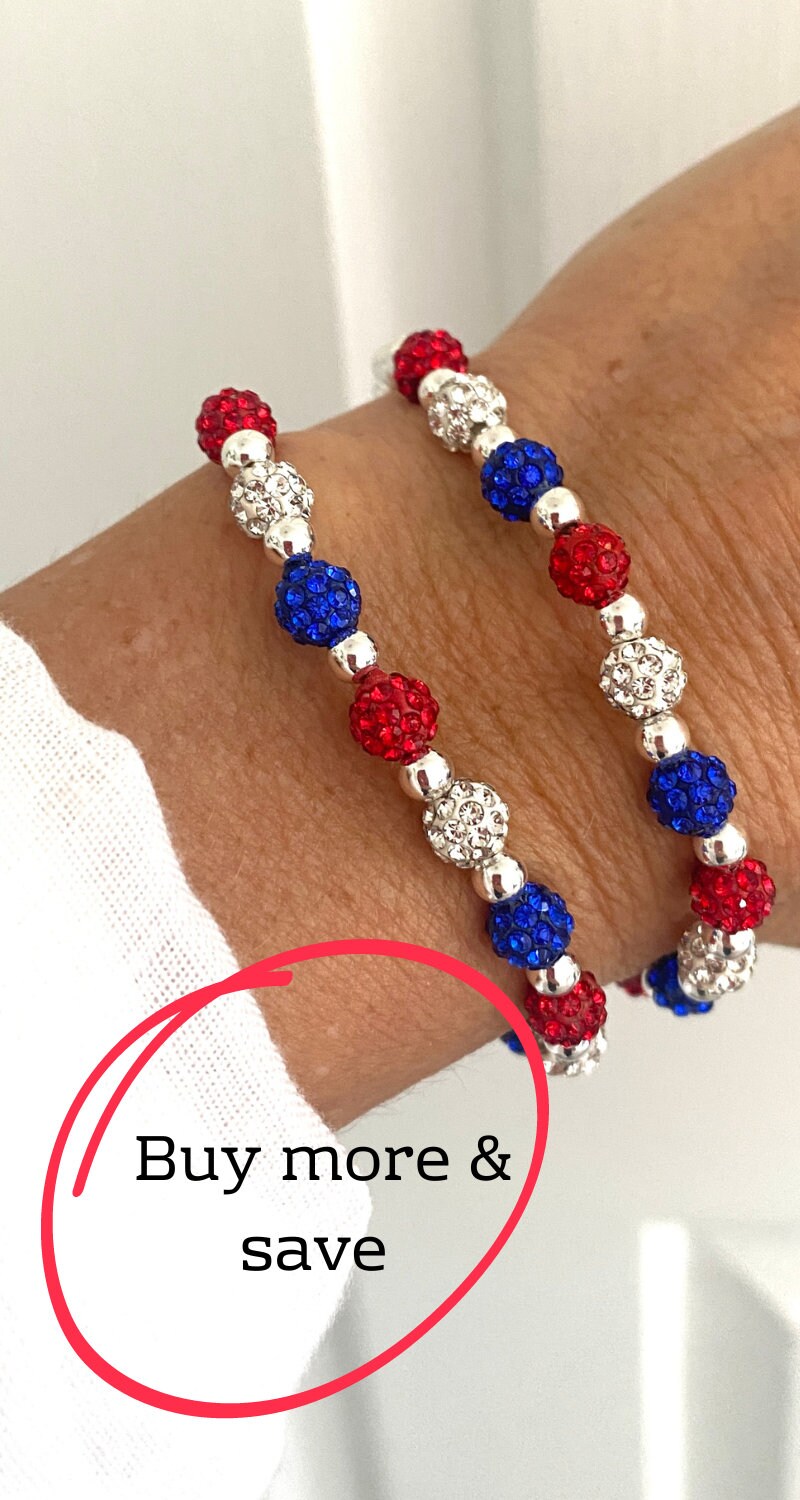 Red white blue bracelet USA crystal jewelry patriotic stretchy gift for her