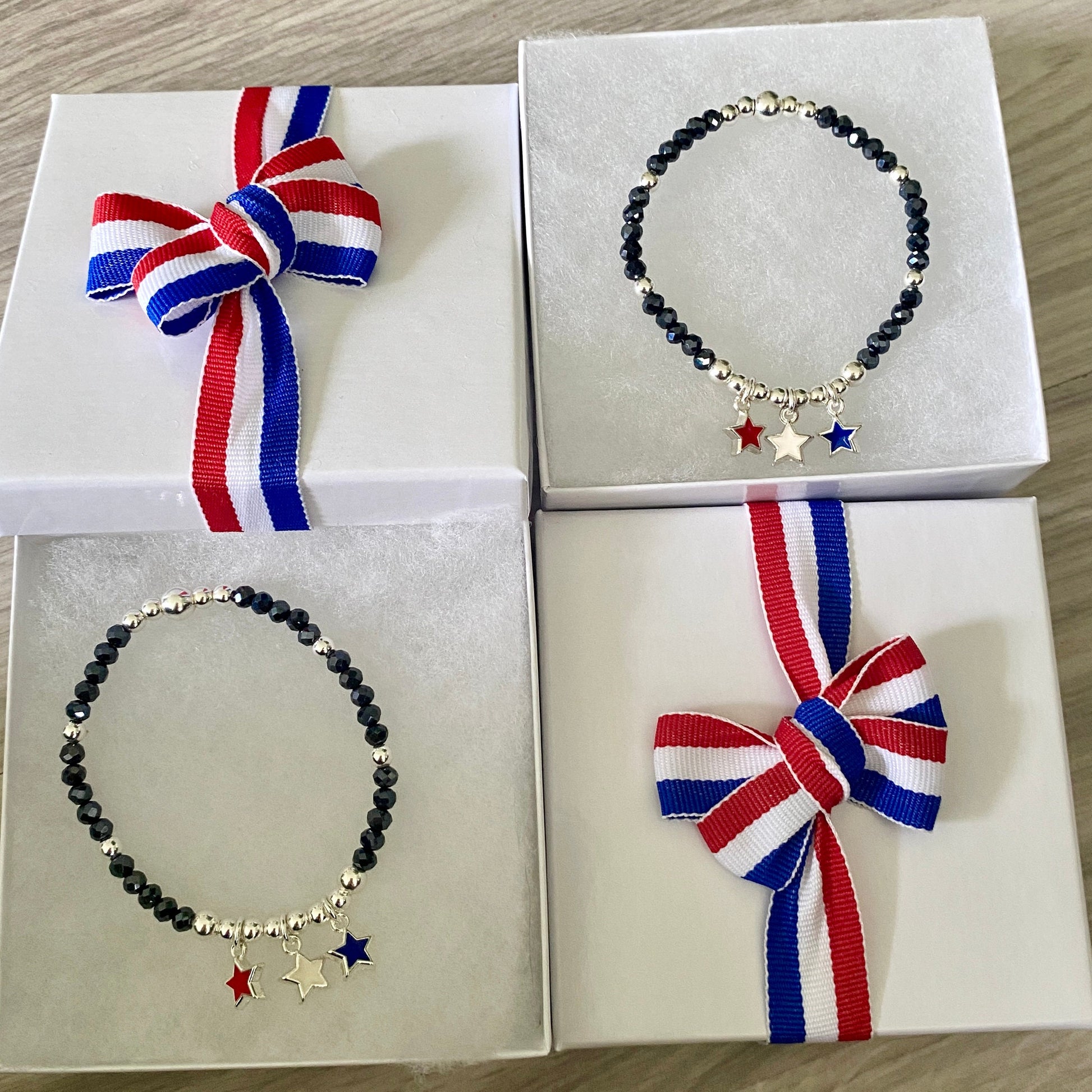 Patriotic navy crystal bracelet USA red white blue star charm gift