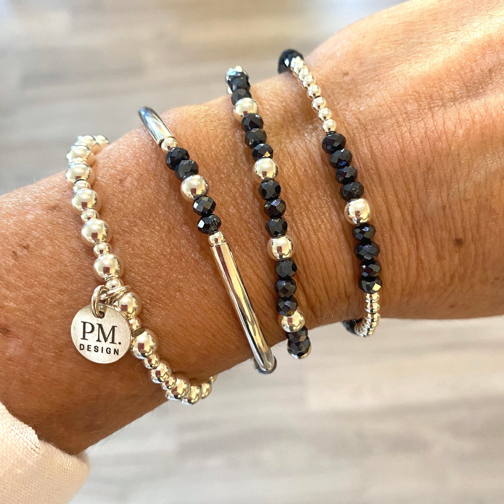 Made with high-quality sterling silver beads and a luminous blue crystal charm, it's designed on a stretchy cord for an easy, comfortable fit ,perfect for everyday wear or elegant occasions.