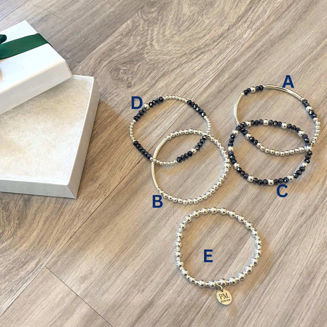 Blue crystal sterling silver beaded bracelet stretchy jewelry set gift for women