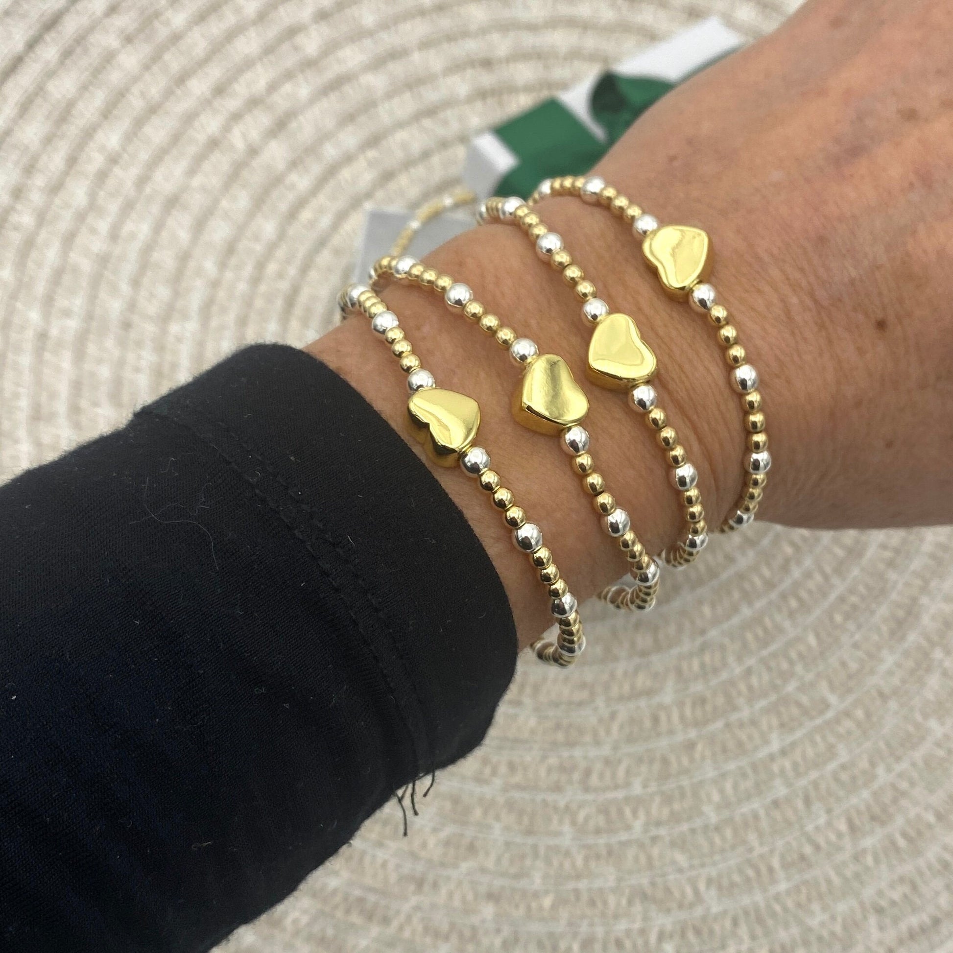 Gold Heart Bracelet Set Women Charm TwoTones Jewelry Stack Silver and Gold Layered Bracelet heart charm jewelry gift bead charm bracelet