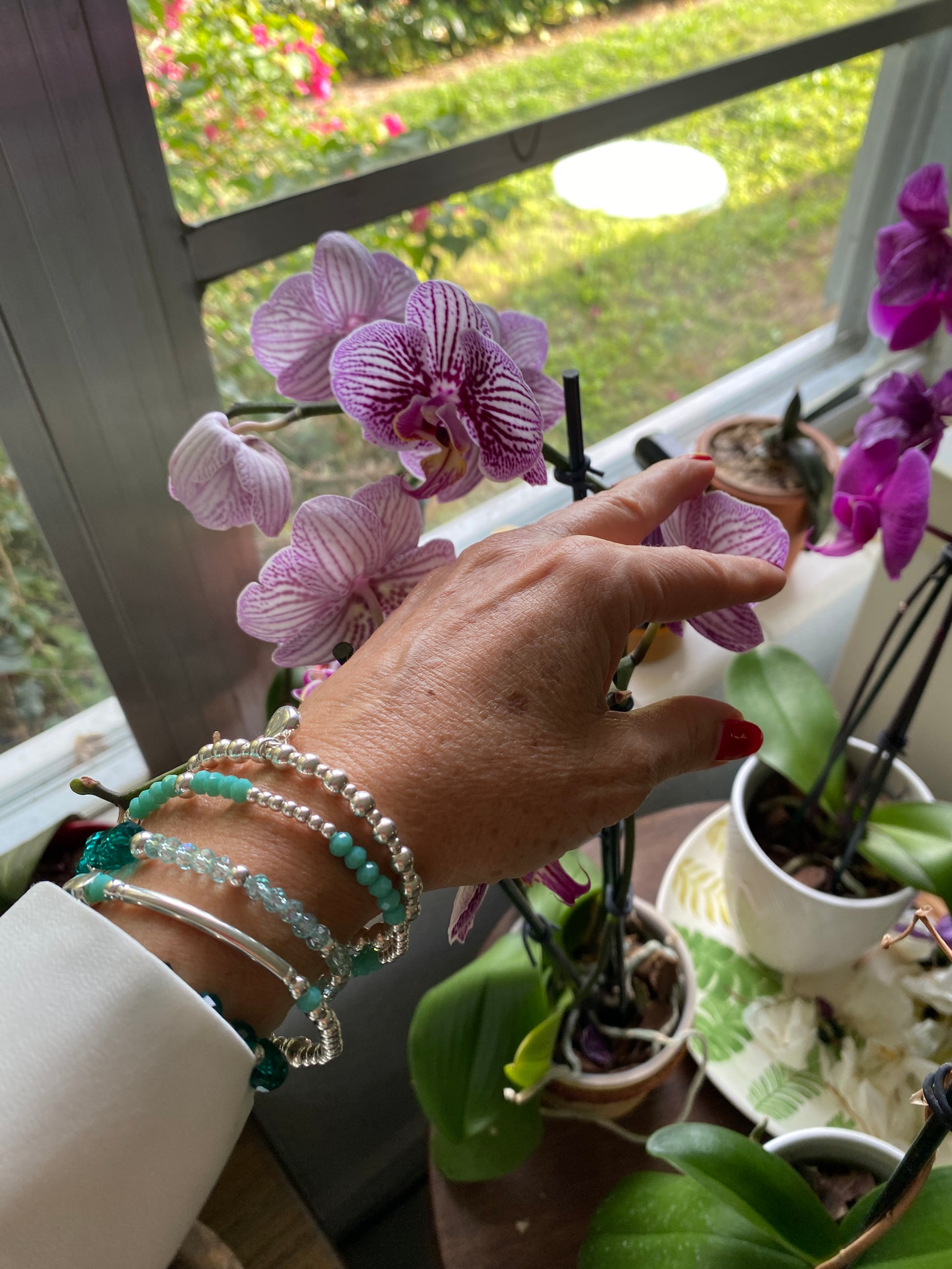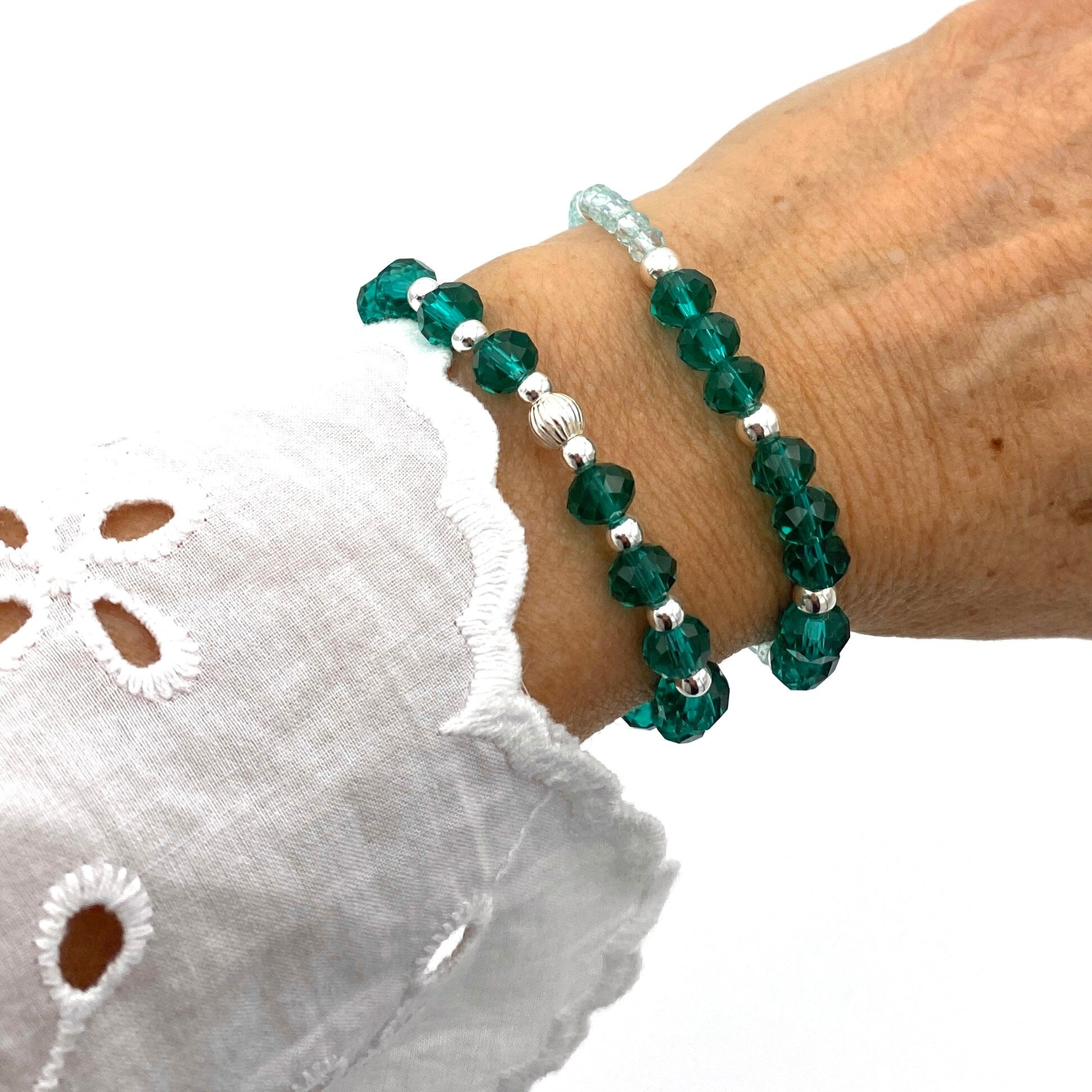 Sterling silver blue green crystal stacking bracelet personalized charm stretchy jewelry women gift