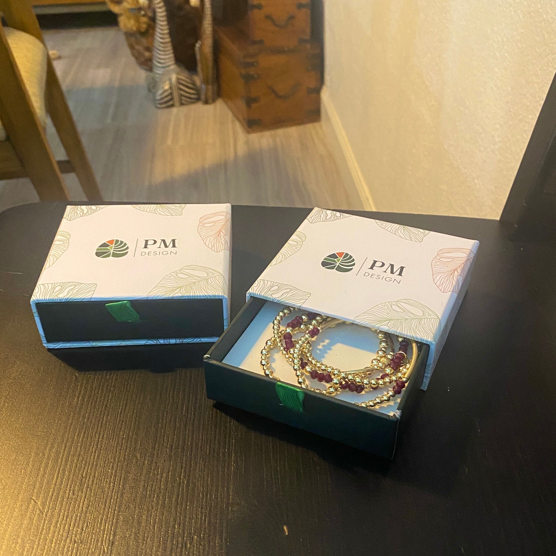 This shiny and elegant bracelet set is made with gold filled beads, deep red crystals, and a heart charm. A modern and stylish design that stretches for comfort and beauty. Perfect as a birthday gift, friendship surprise, or to celebrate a meaningful moment with someone special.