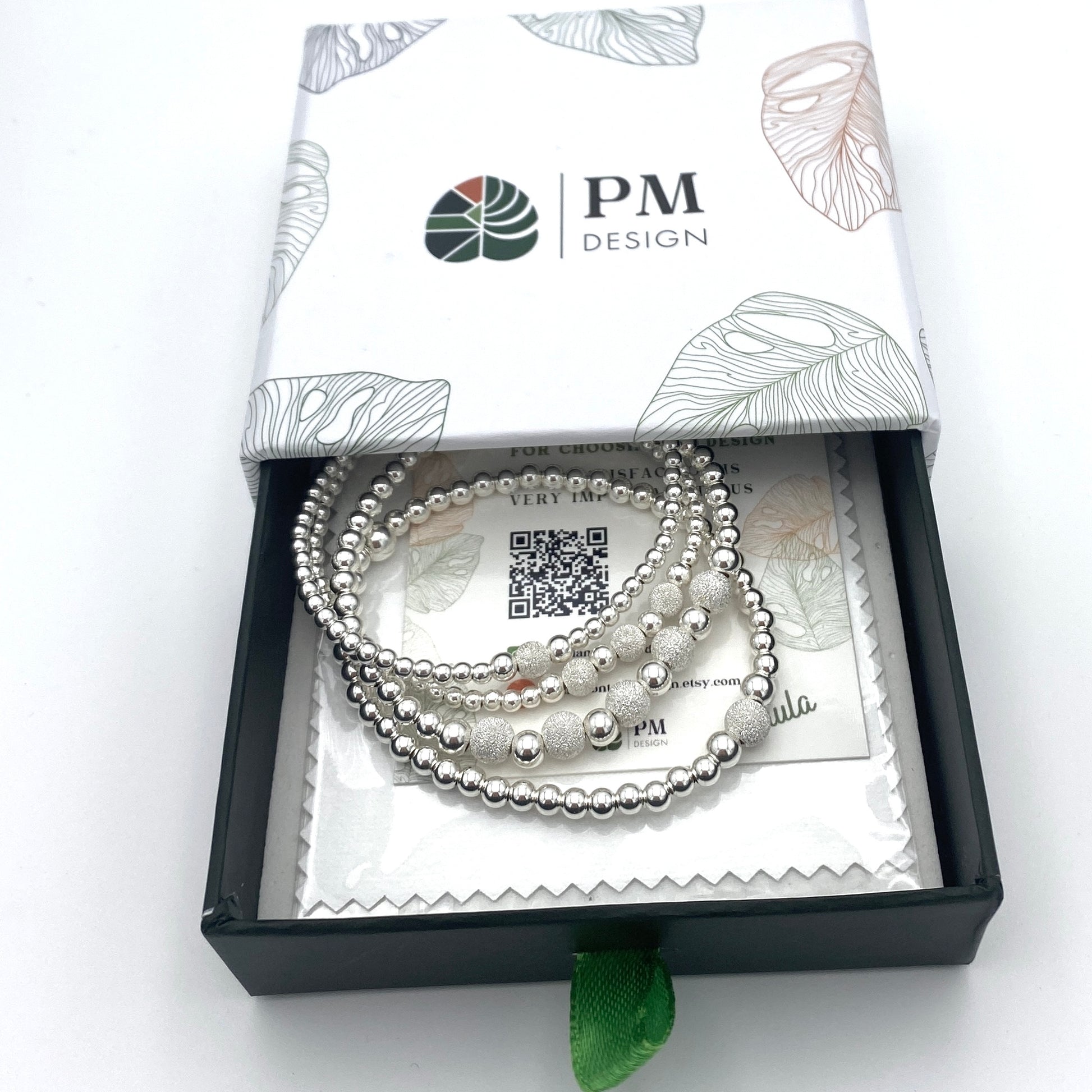 stardust silver stacking bracelet for women beaded stretchy sparkle jewelry bridesmaid gift