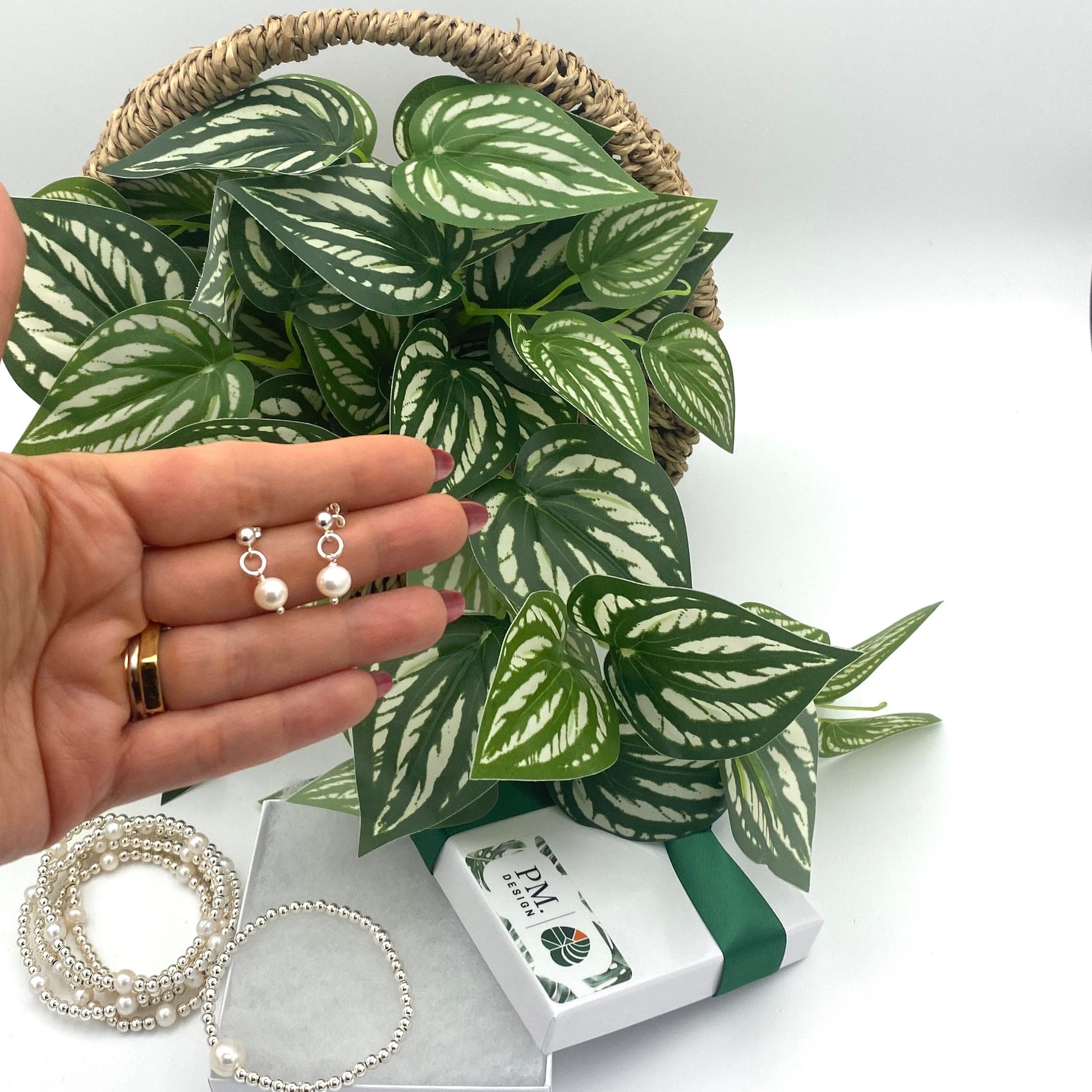 Sterling silver pearl bracelet and earrings jewelry wedding day accessory set bridesmaid friendship gift