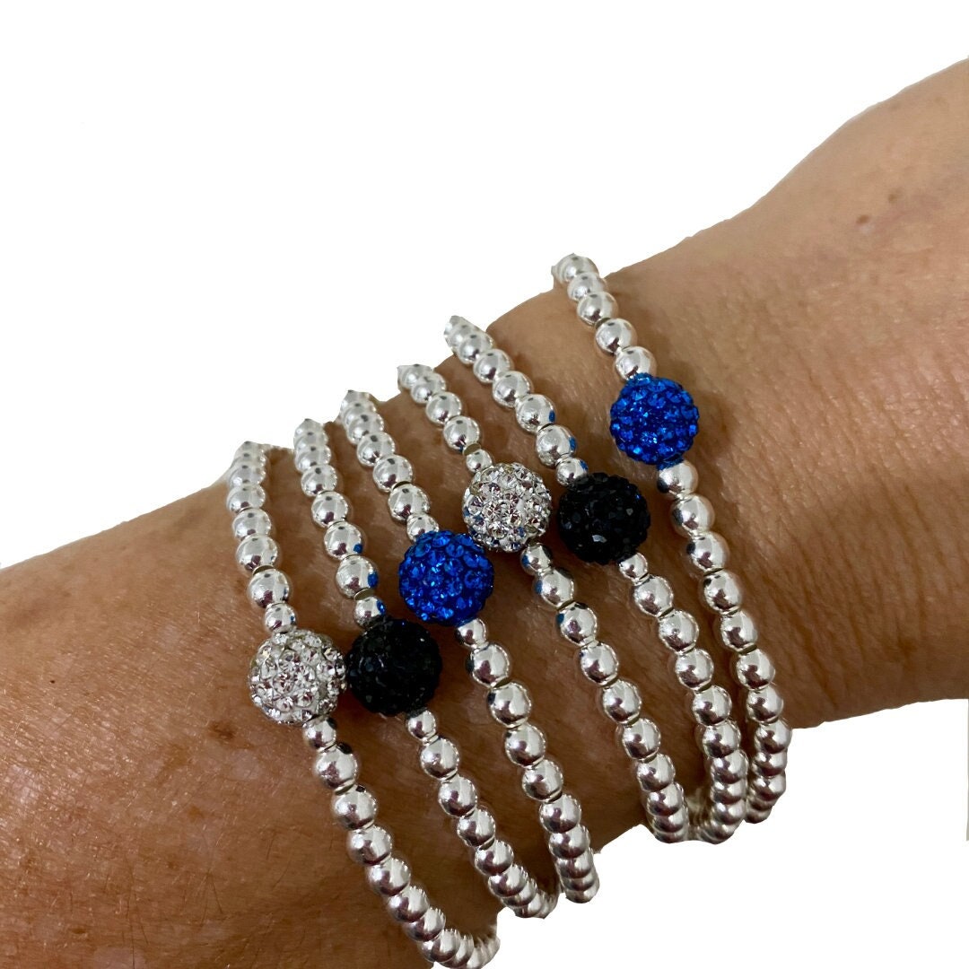Sterling silver rhinestone bracelet blue blacK white crystal colors jewelry gift
