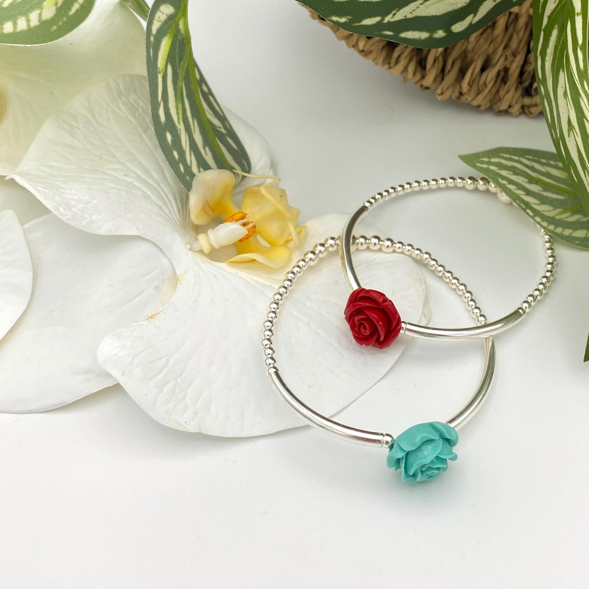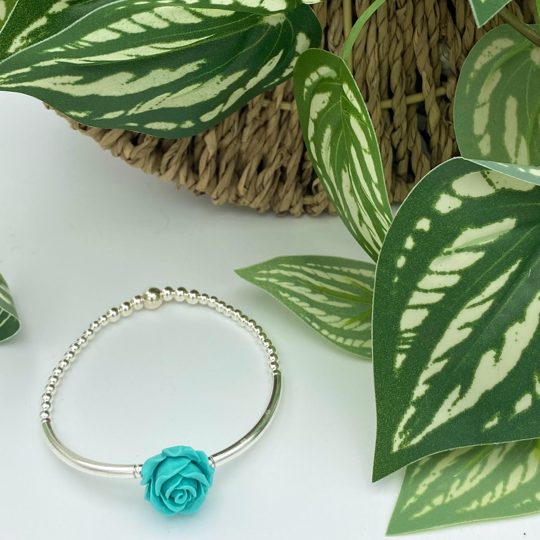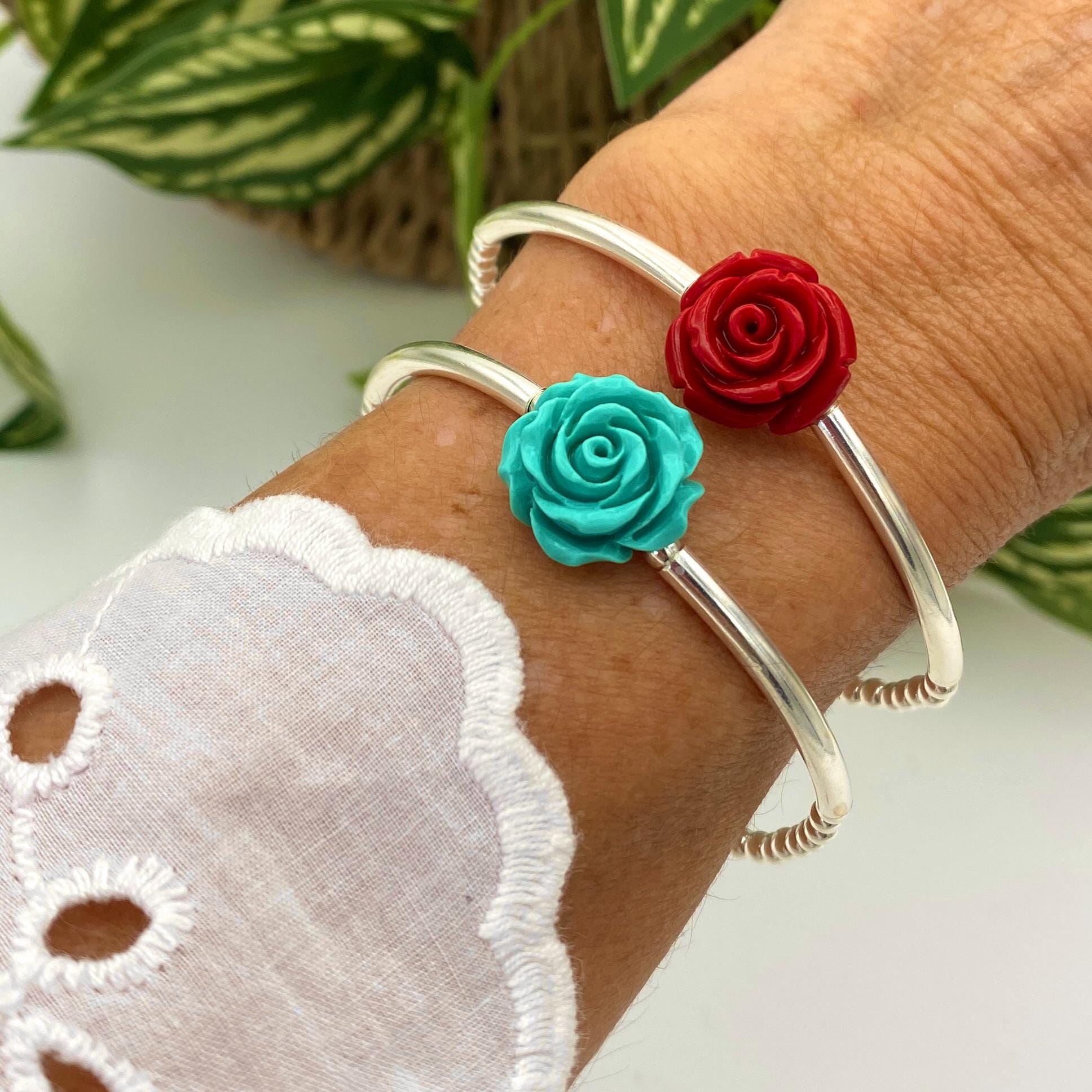 Sterling silver flower bracelet red rose spring jewelry elegant gift for women blue flower dainty mom present