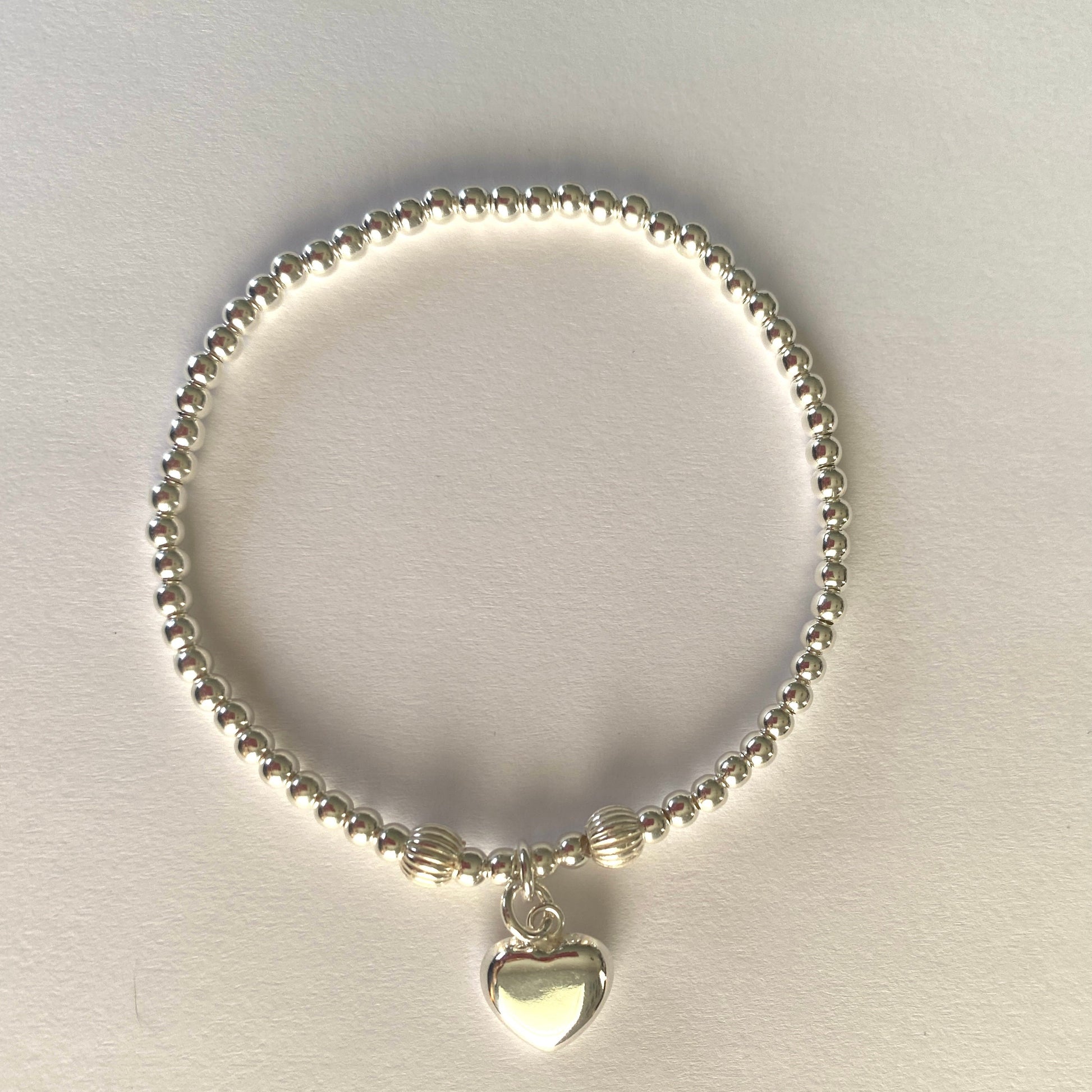 Turquoise Silver heart charm beaded bracelet stacking jewelry gift for women